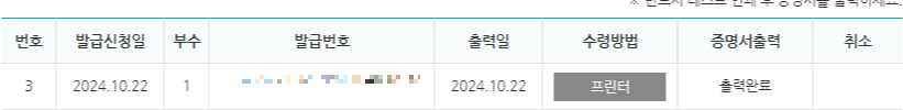 4. 프린터 이외로 발급받을 경우, 「수령방법」에서 선택까지만 해놓으면 KOSA에서 발급관련해 별도로 안내연락이 온다.