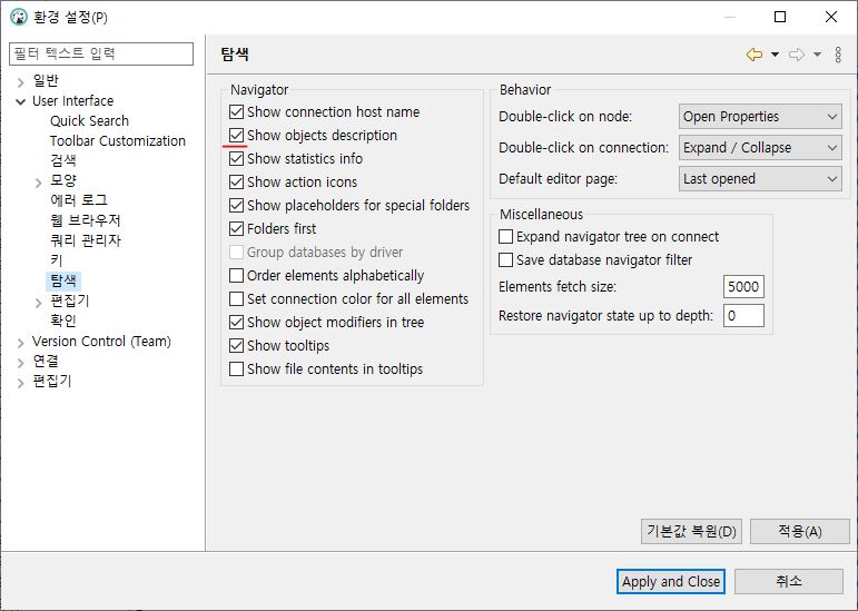 테이블의 Description을 Database Navigator에서 표시하는 설정
