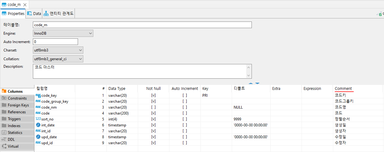 테이블의 컬럼 Comment 표시하는 설정
