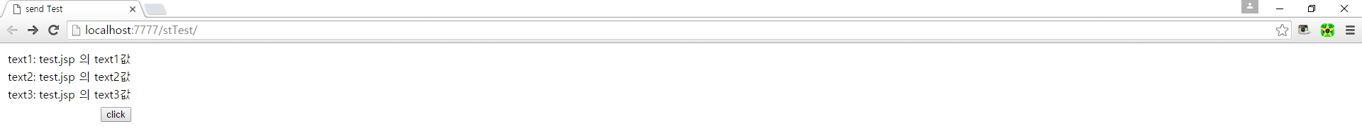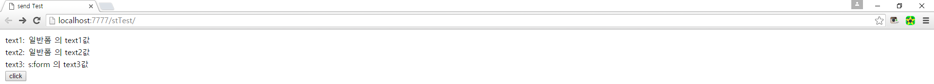 test.jsp에서 click 버튼을 클릭하면, test.jsp의 <s:hidden> 설정값이 test2.jsp에서 잘 출력된다.