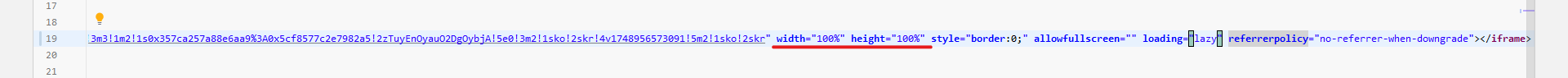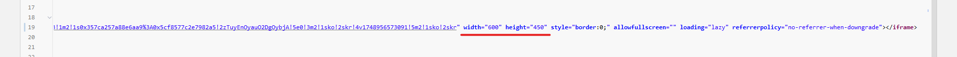 4. 지도의 사이즈가 작을 경우 복사한 HTML 뒷부분의 width(가로), height(세로) 값을 지정하여 지도의 사이즈를 변경해 준다.