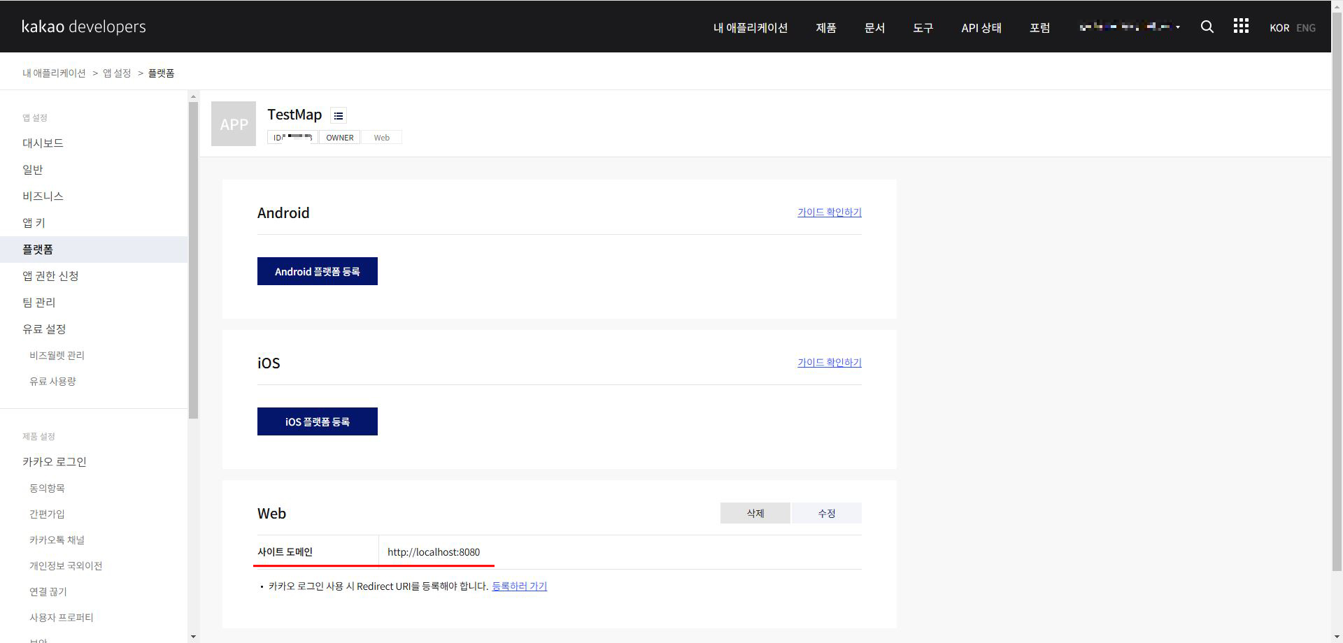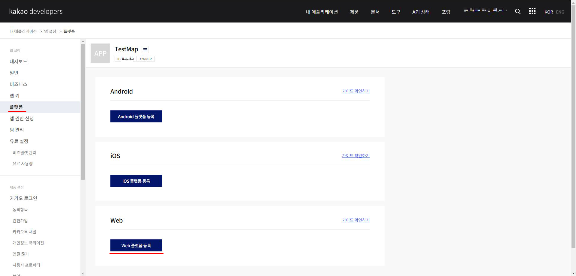 [카카오 지도] KAKAO 지도 앱 키(APP KEY) 발급 및 WEB 플랫폼 등록 방법