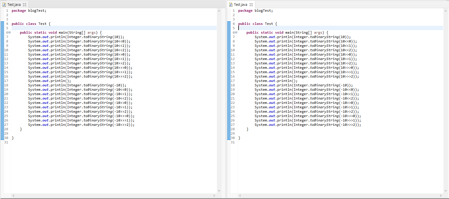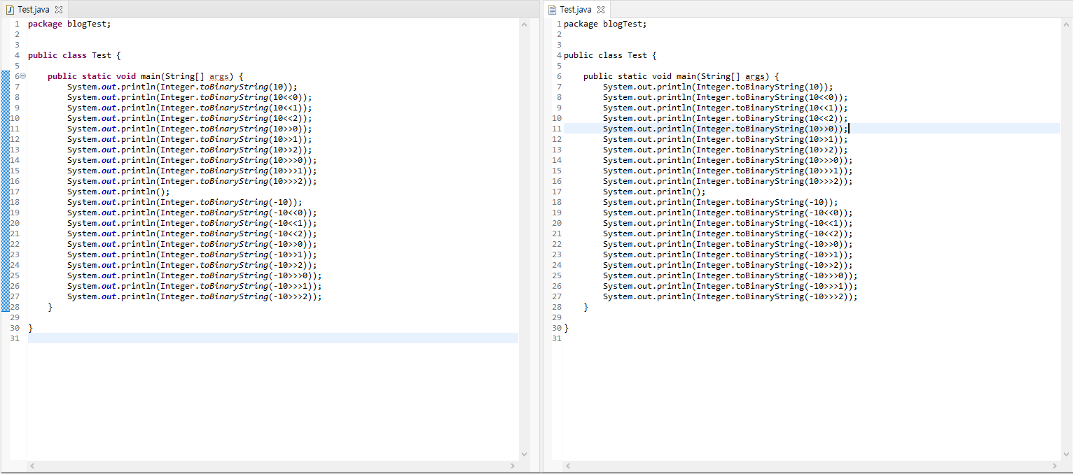 같은 파일을 서로다른 Editor로 (왼쪽은 Java Editor, 오른쪽은 Text Editor) 볼 수 있다.