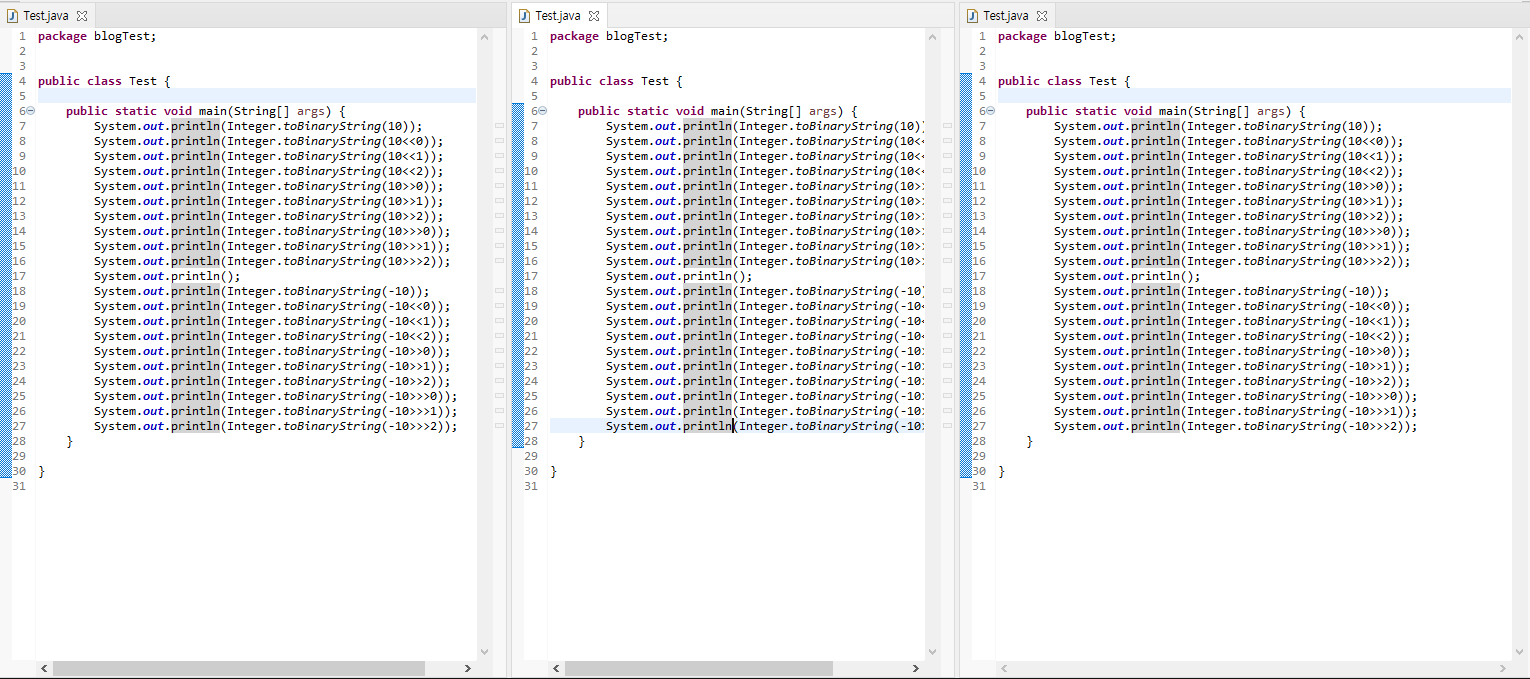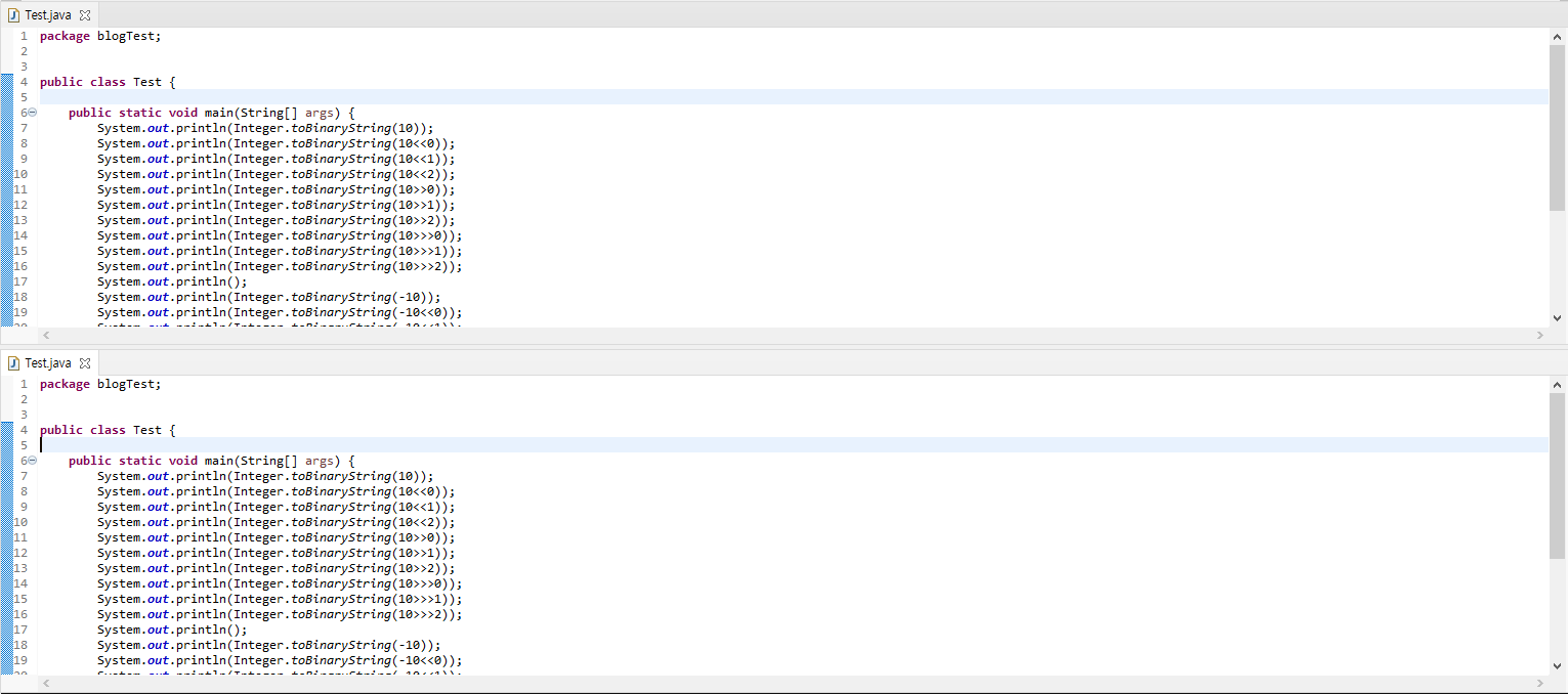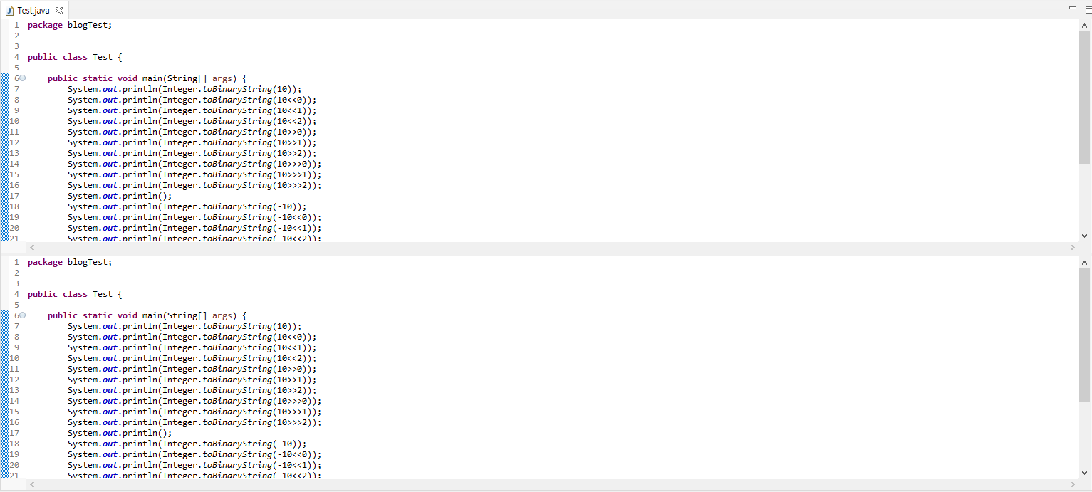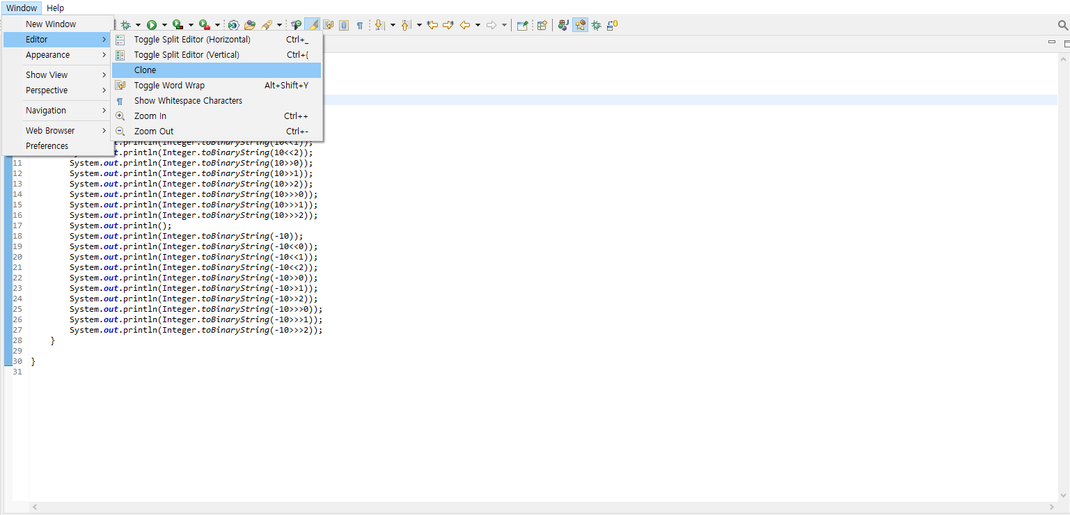 파일 내용이 짧으면 그나마 편하지만 1000줄 이상 넘어가는 파일들은 스크롤바를 올렸다 내렸다 하면서 참고하는 게여간 불편한 게 아니다. 이럴 때 이클립스의 화면 분할 기능을 이용하면 조금 더 편하게 작업할 수 있다.
