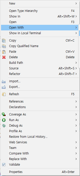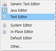 파일명 우클릭 ➡ 「Open With」 ➡ 「Text Editor」 선택