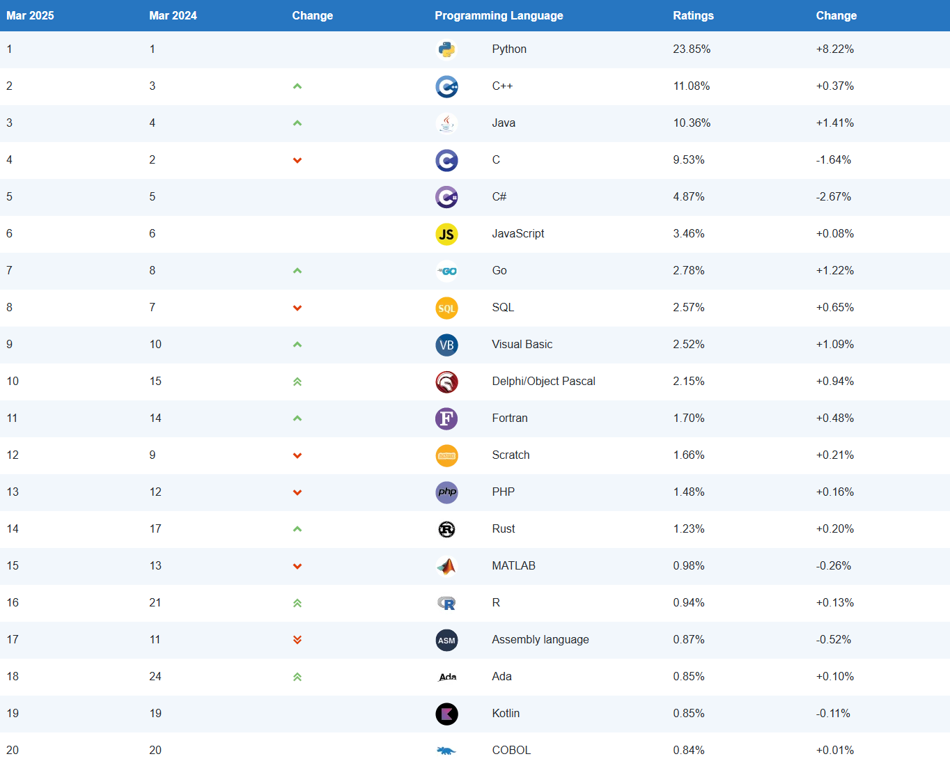 ◆ 2025년 03월 헤드라인 - 올드 언어들의 반격: Fortran, Delphi, Ada, COBOL의 부활