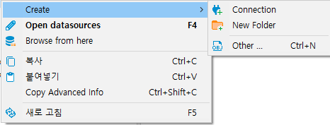 1. Database Navigator에서 마우스 우클릭 ⇒「Create」⇒「Connection」클릭