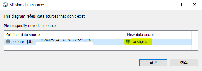 「New data source」에 새로 선택한 Connection이 지정됐는지 확인 후「확인」버튼 클릭