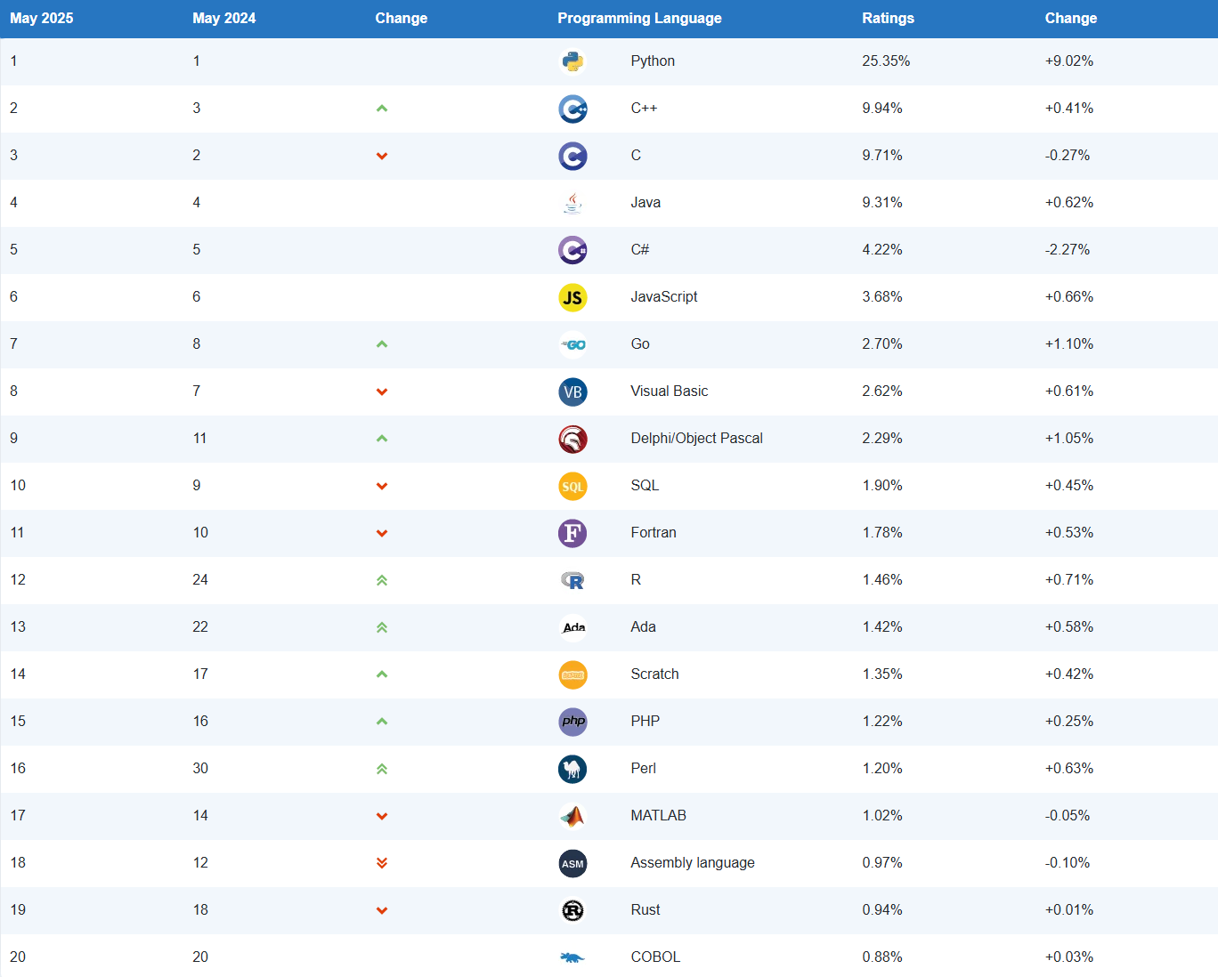 TIOBE Index for May 2025