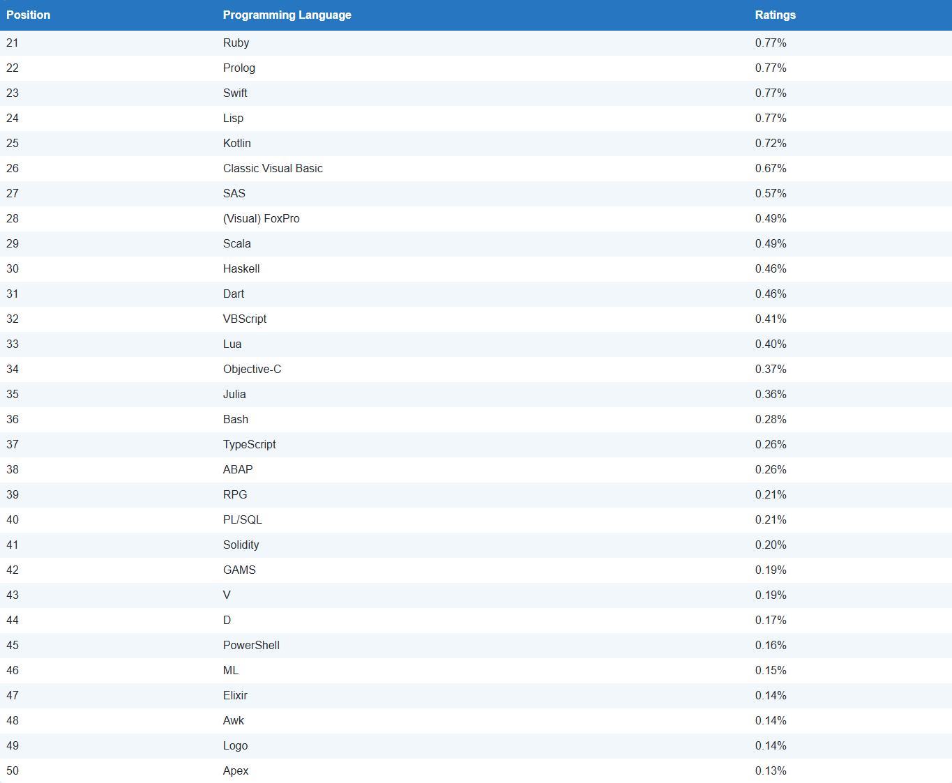 'IT 기타 > 프로그래밍 언어 순위' 카테고리의 다른 글