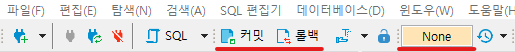 도구모음의 커밋, 롤백 버튼 : 비활성화