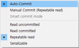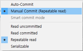 DBeaver는 데이터베이스에 변경 사항을 적용하기 위한 두 가지 커밋 모드가 지원된다.