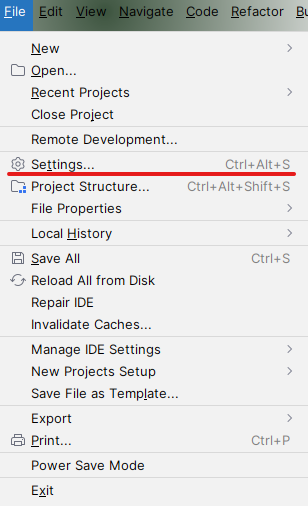「File (파일)」⇒「Settings... (설정)」선택