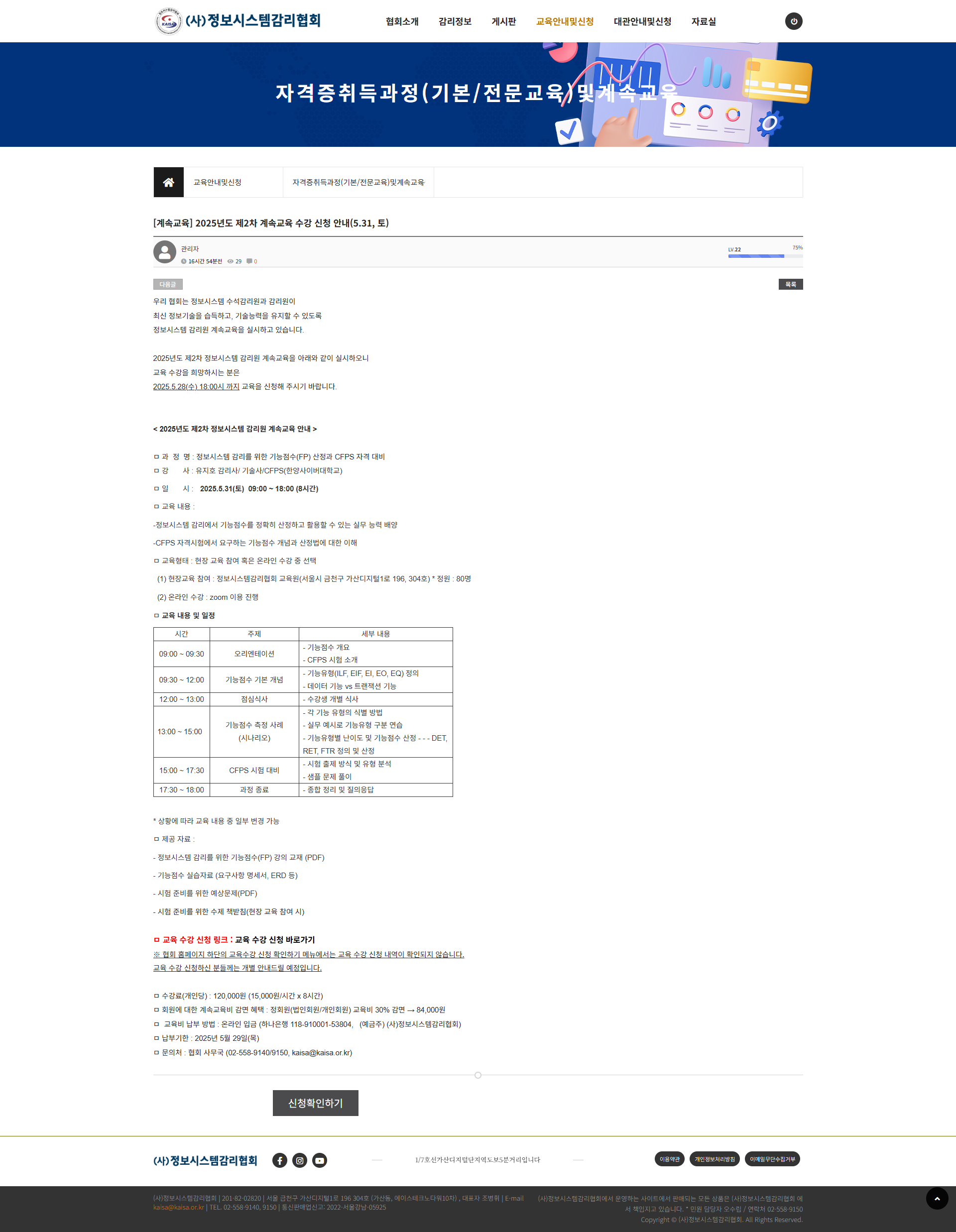 2.「교육안내및신청」⇒「자격증취득과정(기본/전문교육)및계속교육」메뉴 클릭