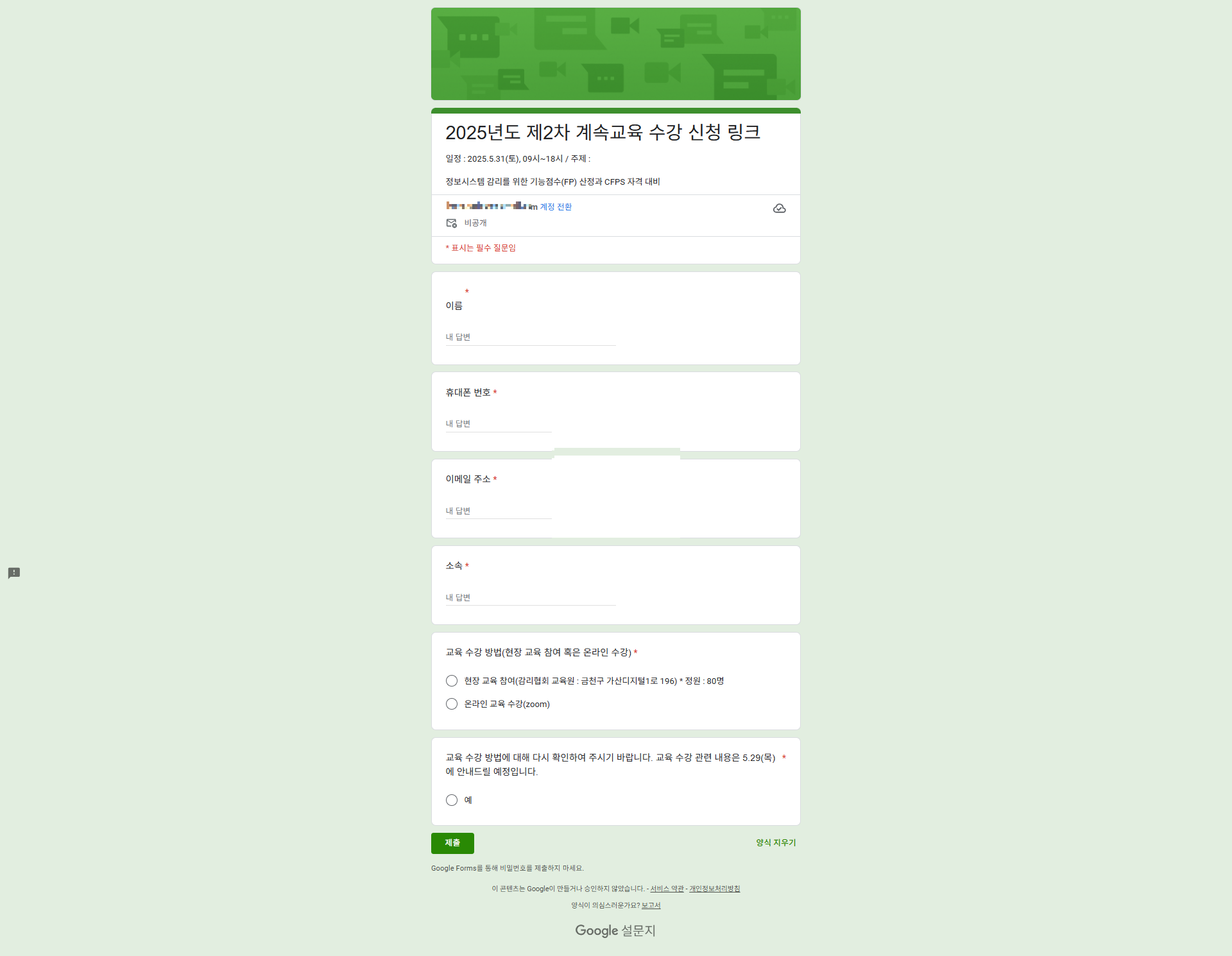구글 설문지로 신청하는 것이기 때문에 협회 홈페이지 하단의 "신청확인하기" 버튼을 클릭해도 교육 수강 신청 내역은 확인되지 않는다.