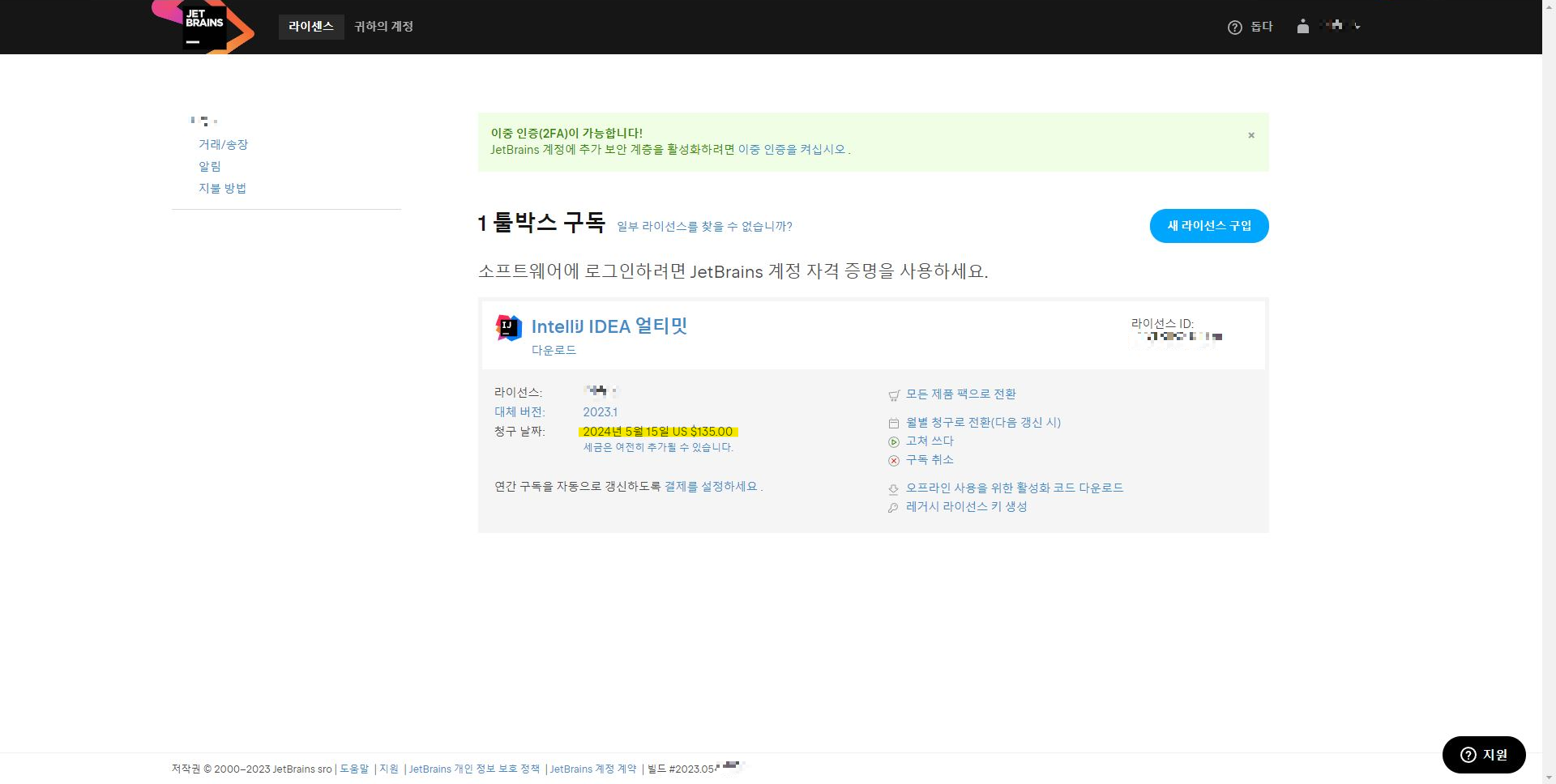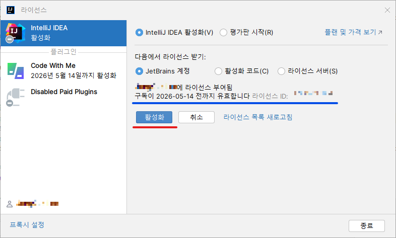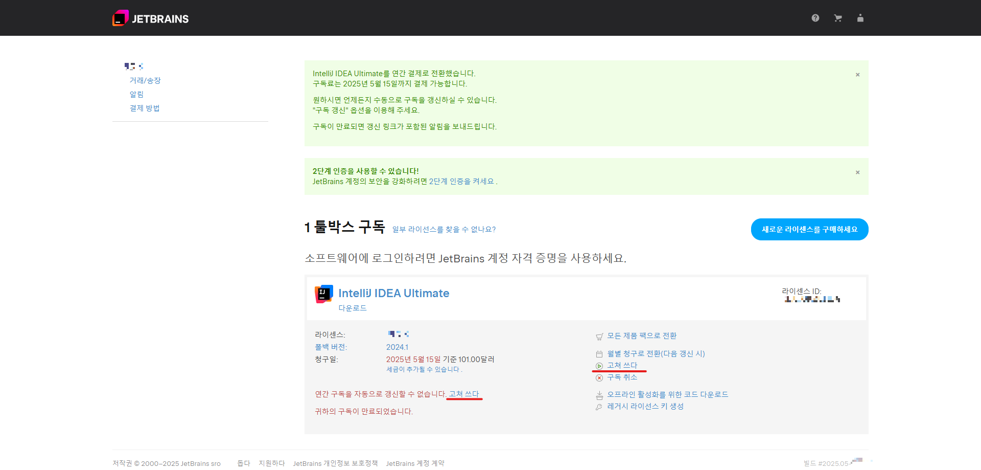 인텔리제이 라이선스 결제방법 (신규 구매, 갱신)