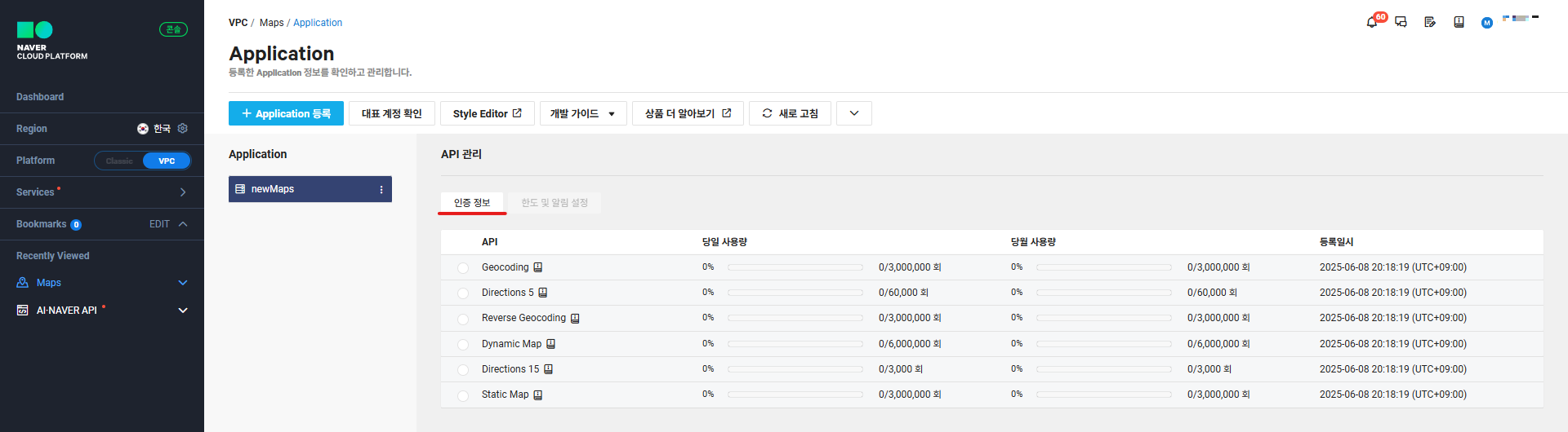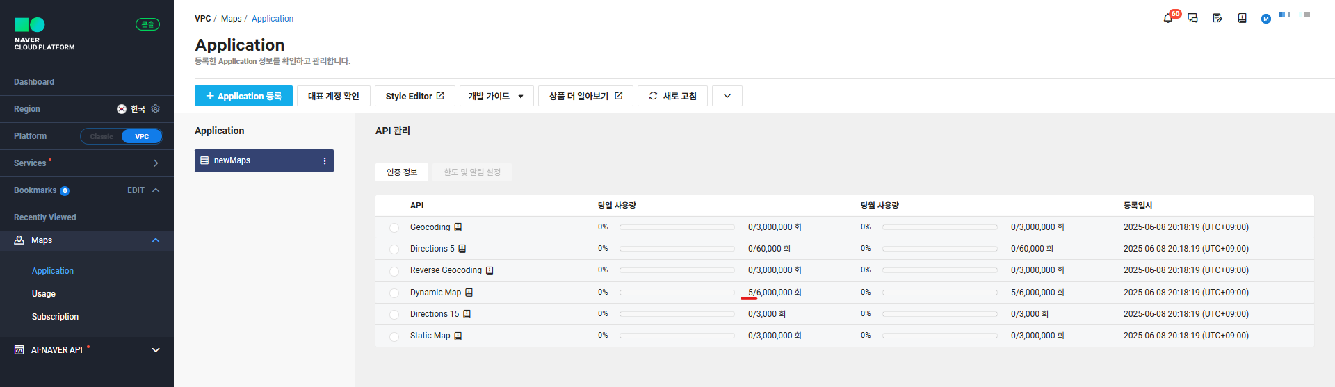 10. 새로 발급받은 Client ID로 생성한 맵이 잘 나오고, 정상적으로 나오고 사용량도 증가하는 거 까지 확인되면 완료.