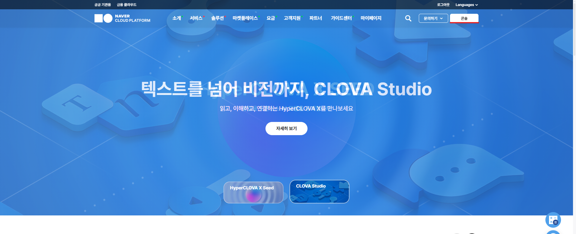 1. NAVER CLOUD PLATFORM (개인/일반 기업용) 웹사이트 접속 후 우측 상단의 「콘솔」버튼 클릭