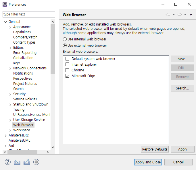이클립스(Eclipse)의 Web Browser(웹 브라우저) 변경 및 추가 방법