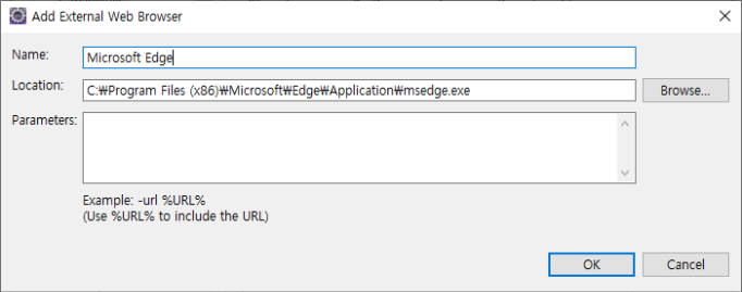 Location: 추가할 브라우저의 실행파일(.exe) 경로