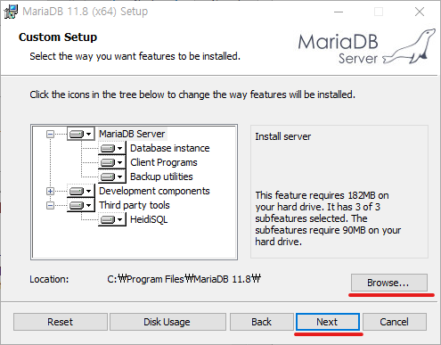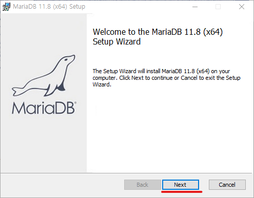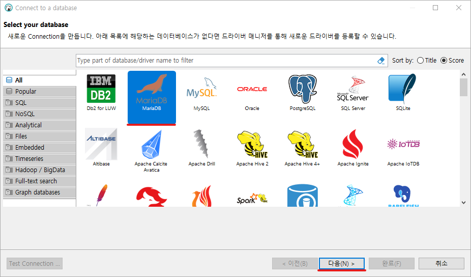 2. "MariaDB" 선택 후, "다음(N) >" 버튼 클릭