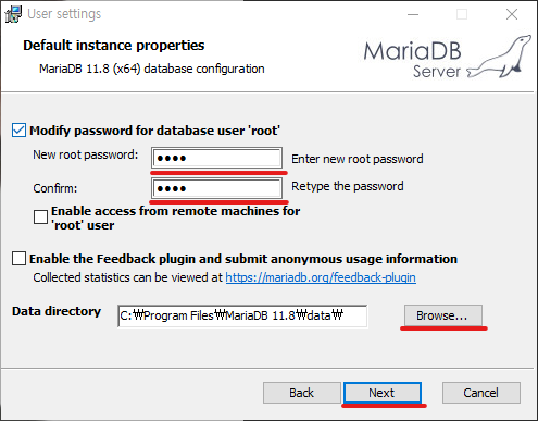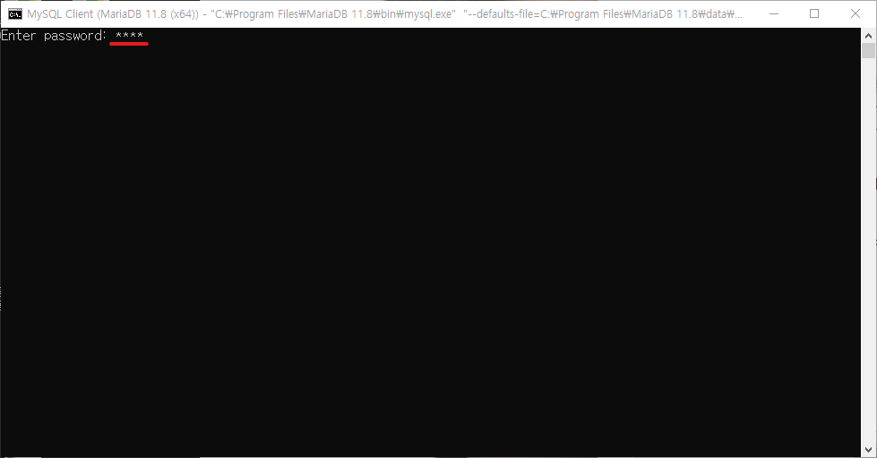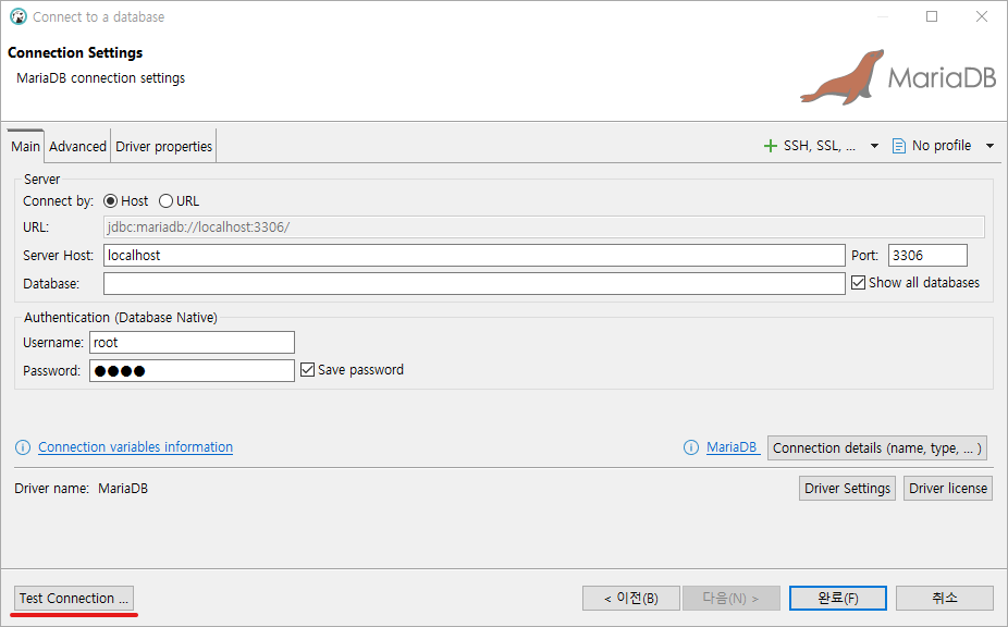 Password : (MariaDB 설치 시 설정했던 root계정 비밀번호)