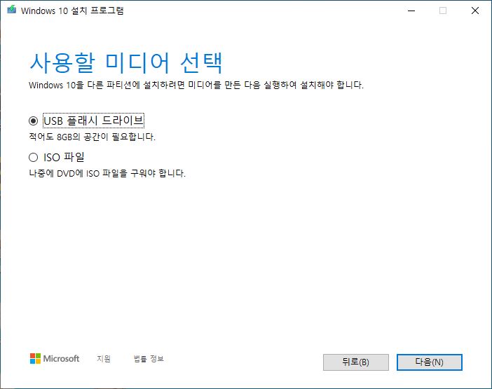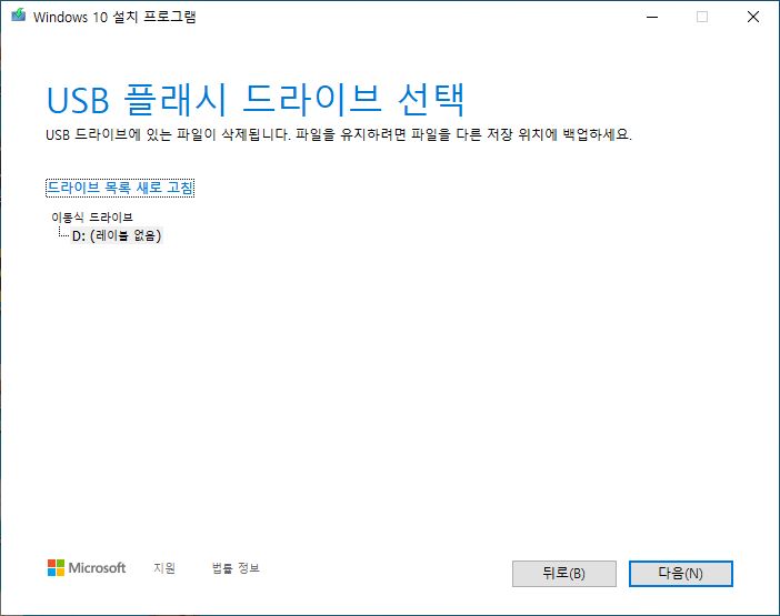 「USB 플래시 드라이브」선택 후 「다음」버튼 클릭