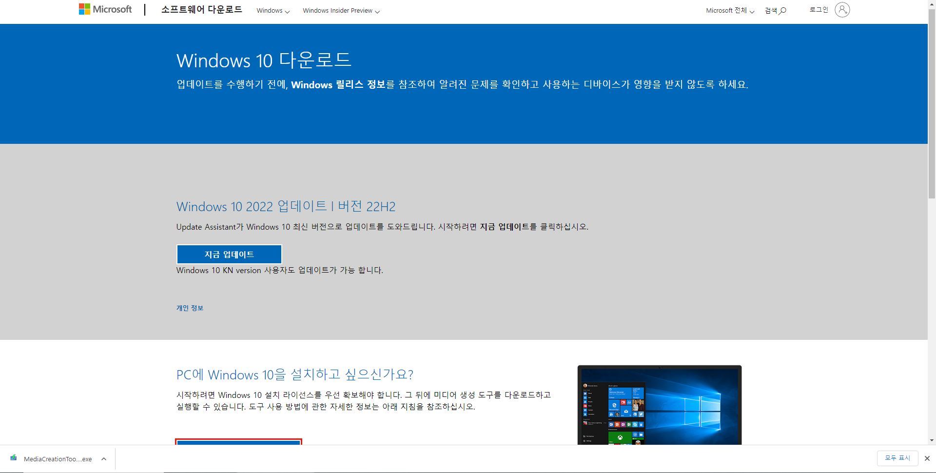 2. 윈도우10 (Windows10) 설치 프로그램 다운로드