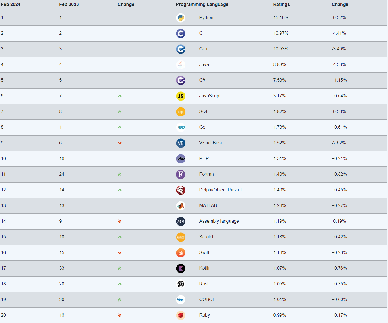 TIOBE Index for February 2024