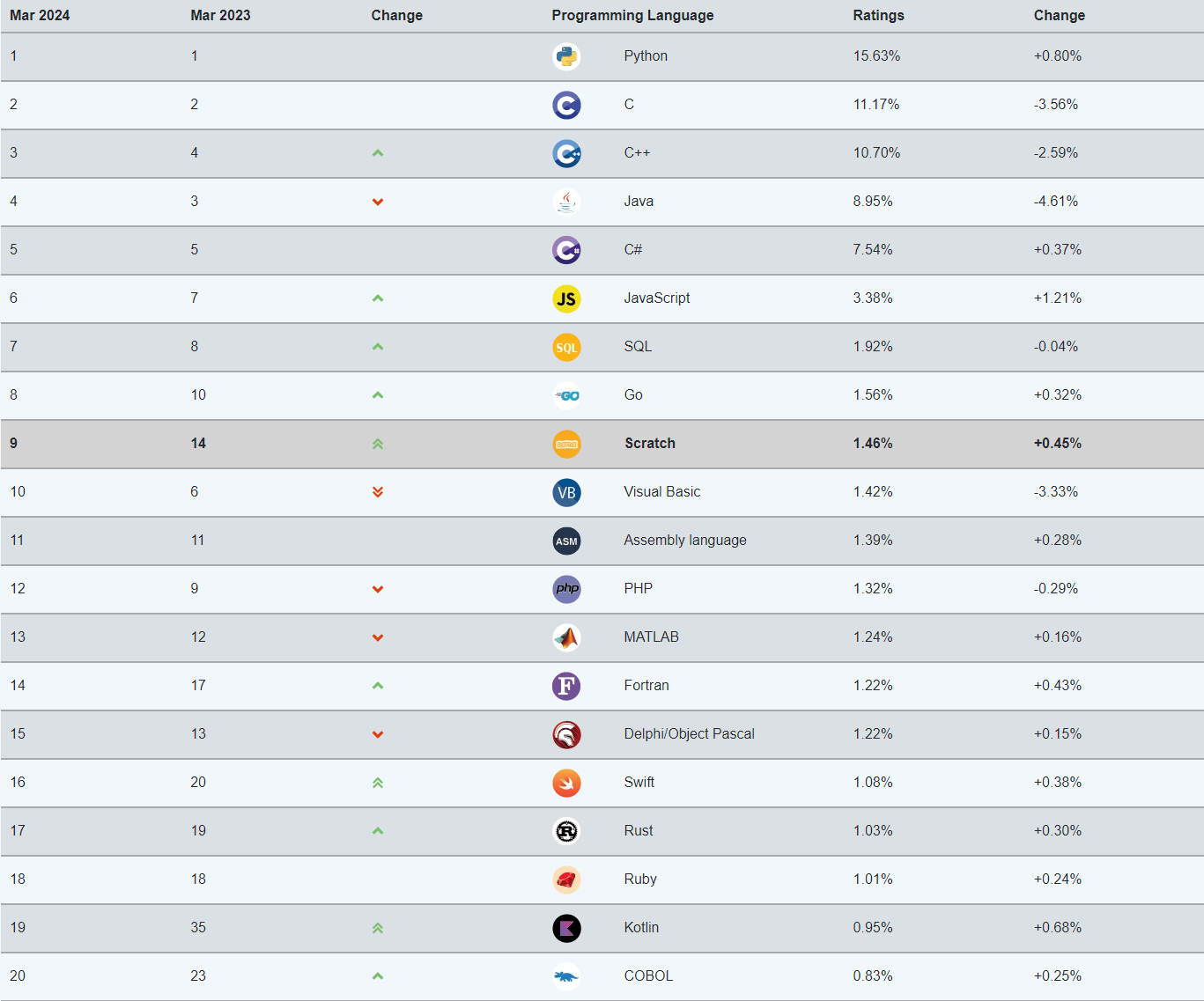 TIOBE Index for March 2024