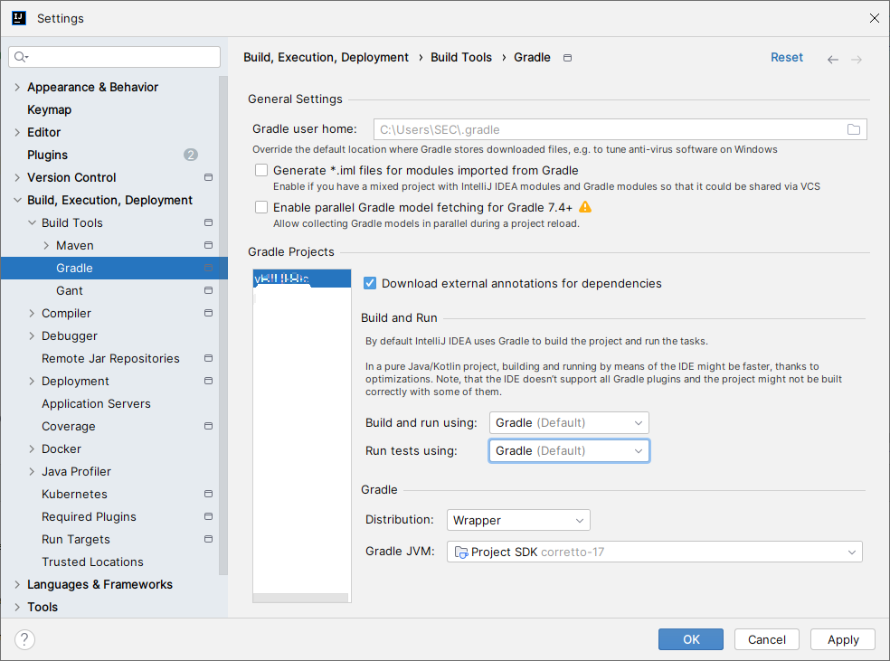 2. 「Build, Execution, Deployment」 ⇒ 「Build Tools」 ⇒ 「Gradle」