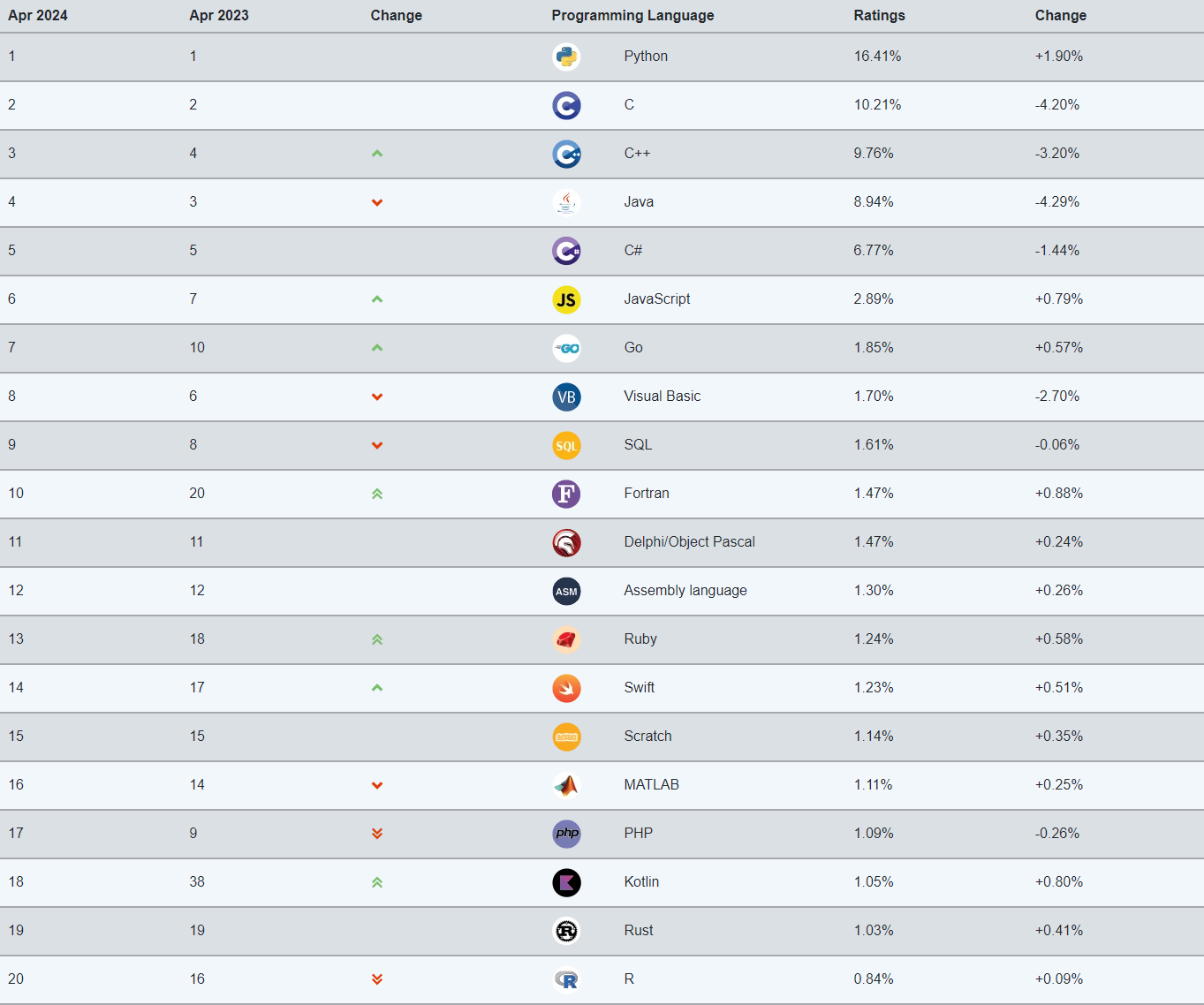 TIOBE Index for April 2024