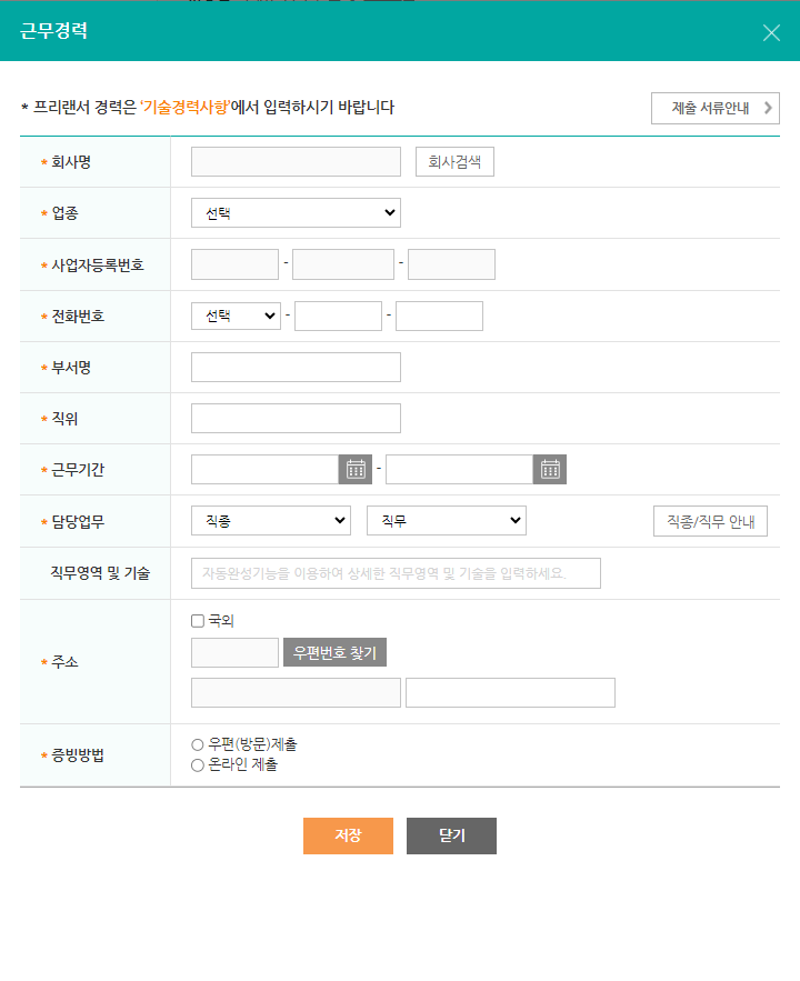 2. 근무기간외 세부내용이 동일해야 한다. (아래 근무경력사항의 업종 ~ 주소)