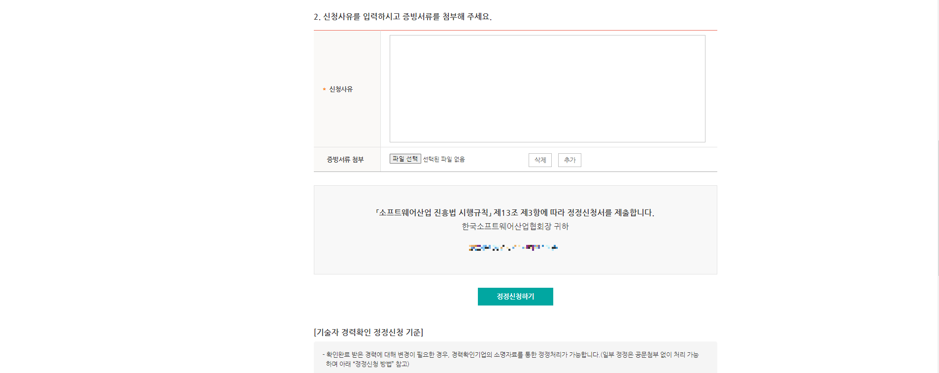 ◆ 기술자 경력확인 정정신청 조건