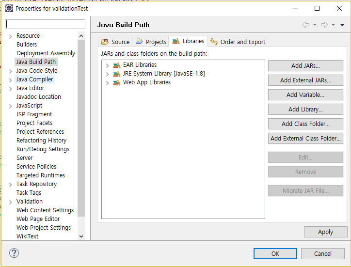 2. 「Java Build Path」 ⇒「Libraries」 탭 ⇒「Add Library」 버튼 클릭