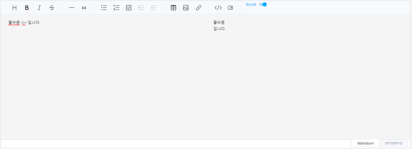 editor.setMarkdown('줄바꿈<br>입니다.');