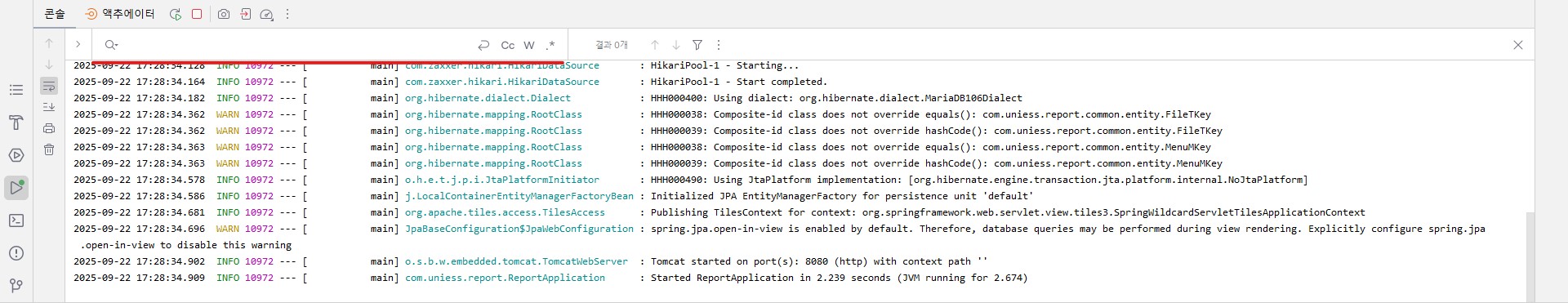 인텔리제이 콘솔에서 내용을 찾고싶을때 Find 기능을 적용하면 쉽게 검색할 수 있다.