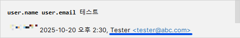 등록한 작성자의 이름(user.name)과 이메일(user.email)은 아래와 같은 곳에서 사용된다.